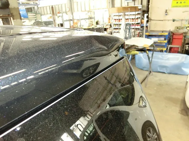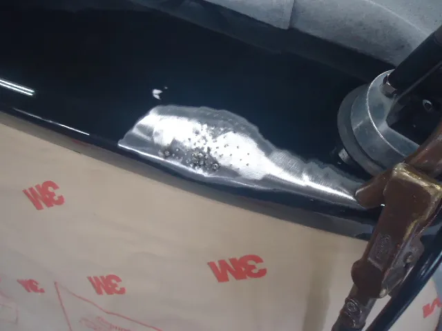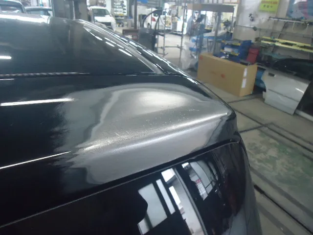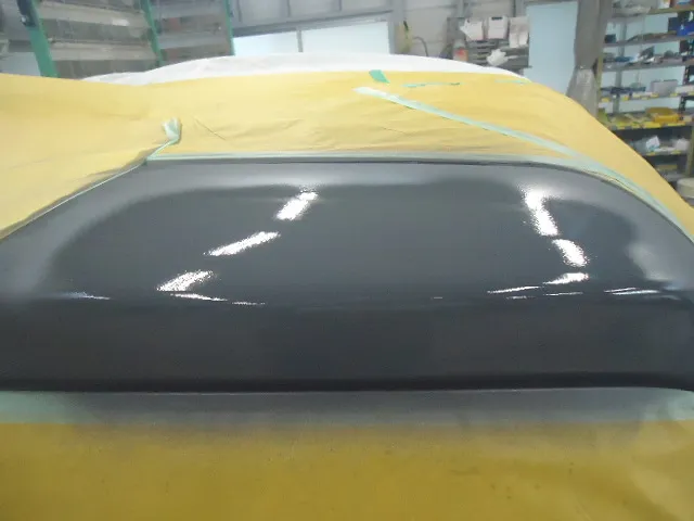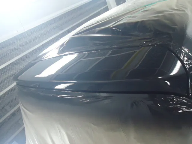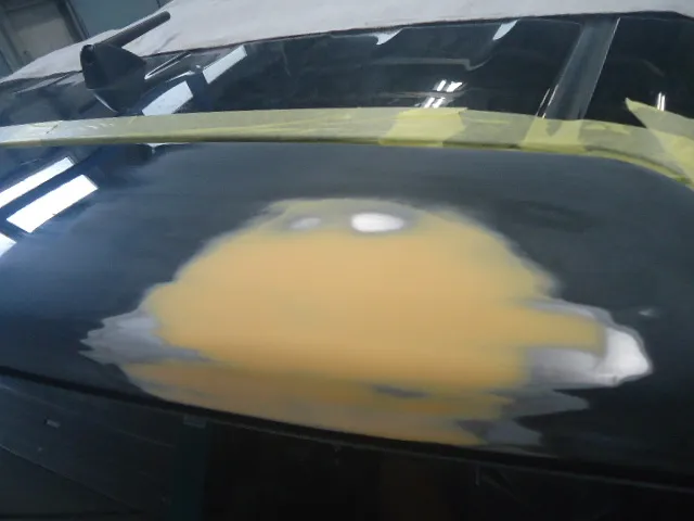 ポリエステルパテを盛り、乾燥後綺麗に研ぎおろします。黒なので歪みがめだちやすく慎重に砥いでいきます。