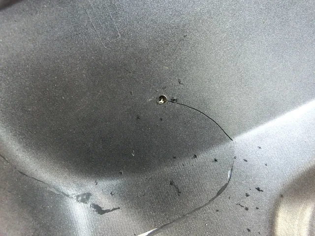 これ以上亀裂が走らないように先端部をドリルで穴を開けます。