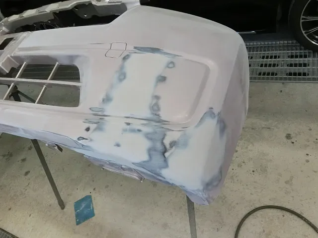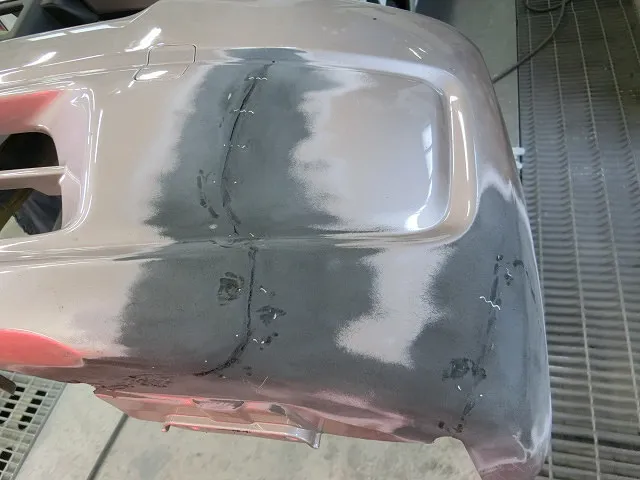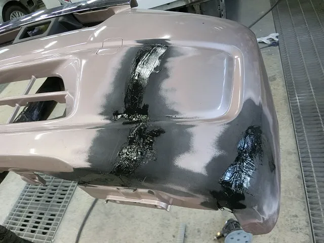 接着剤を研磨後バンバー用のパテを付け、乾燥後に