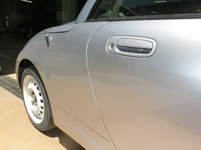 リアフェンダーだけを塗装すると色の差がわかりますので隣のドアーも塗装、段々色を薄くしてぼかし塗装、最後に艶をだすためクリヤー塗装仕上げ。